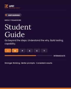 The Comprehensive Student Guide expands the IMPACT Framework into a deeper learning experience designed to build real capability, not just usage.